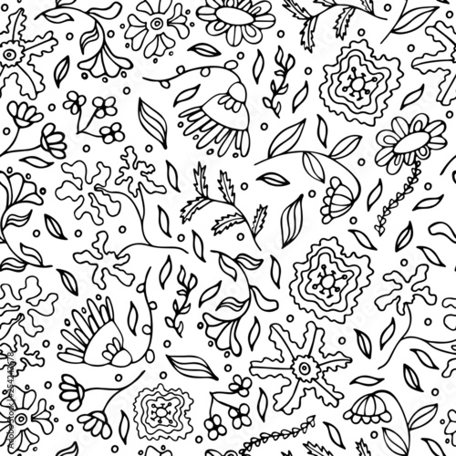 Seamless Floral Pattern Black And White Coloring Page / Seamless Floral Background In Doodle Style With Flowers Leaves And Birds Coloring Book Page Vector Hand Drawn Pattern In Black And White Stock Vector Image Art Alamy - Design indian, arabic, asian, ethnic pattern.